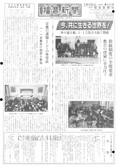 第492号 福音新聞 1992年02月