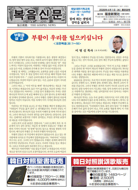 제858호 복음신문 2026년 04월호 입니다. 하기의 첨부파일을 클릭하시기 바랍니다.