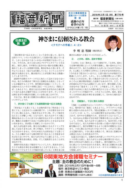第770号 福音新聞 2018年02月