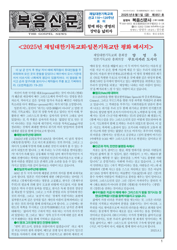 © Copyright 2018 The Korean Chiristian Church in Japan.