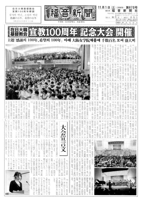 감사의 100년、희망의 100년. 모든것에 감사하라.(살전 5:18)