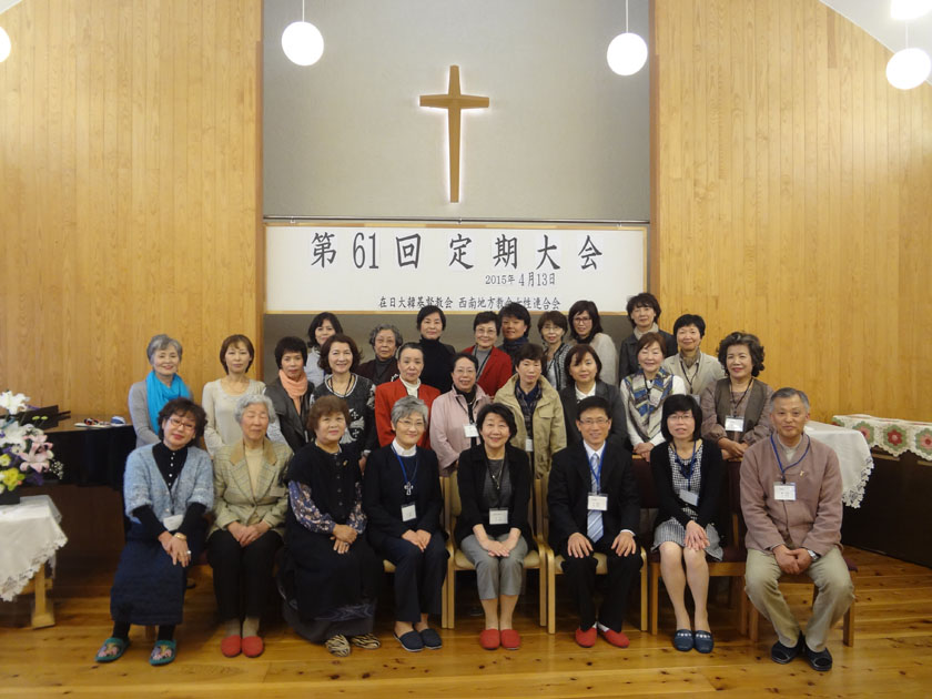 <서남지방회> 여성 연합회 제61회 정기대회 개최 4월13일 오전 10시 30분부터 코쿠라교회에서 서남지방회 여성연합회 제61회 정기대회가 6교회에서 28명의 대의원이 참가한 가운데 개최되었다. 이번 정기총회에서는 2기(4년)에 걸쳐서 봉사를 해 온 김행자장로(후쿠오...(15-04-13)