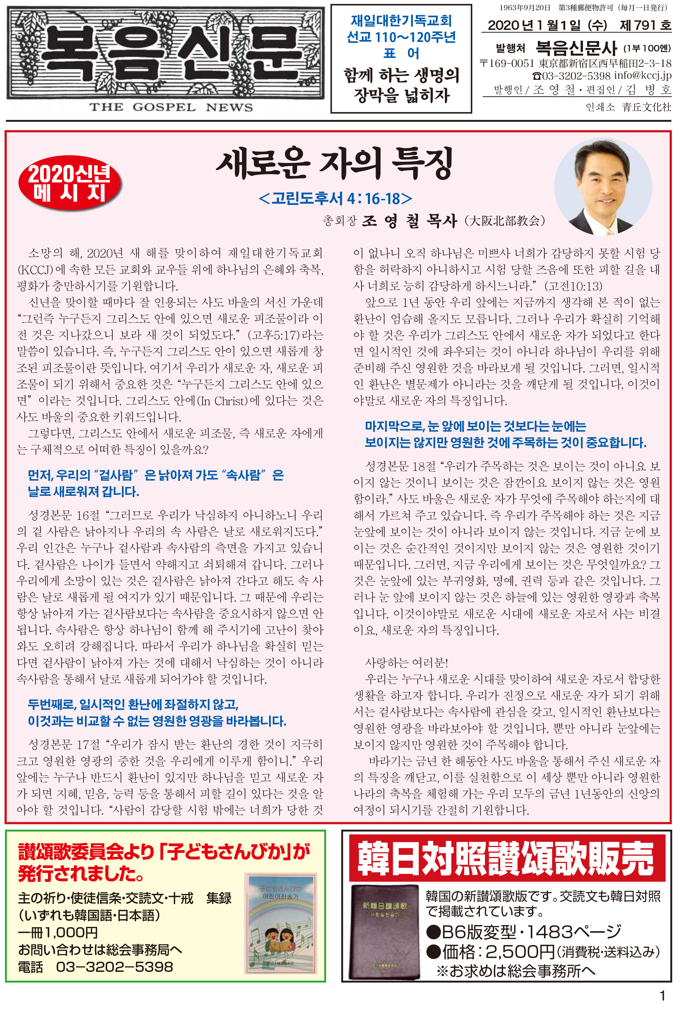 제791호 복음신문 2020년 01월호 입니다. 하기의 첨부파일을 클릭하시기 바랍니다.