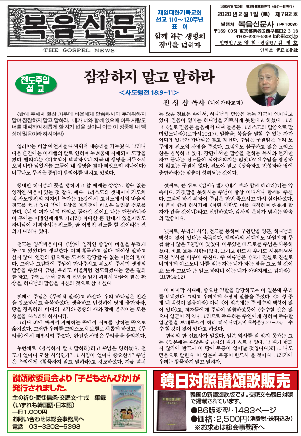 제792호 복음신문 2020년 02월호 입니다. 하기의 첨부파일을 클릭하시기 바랍니다.