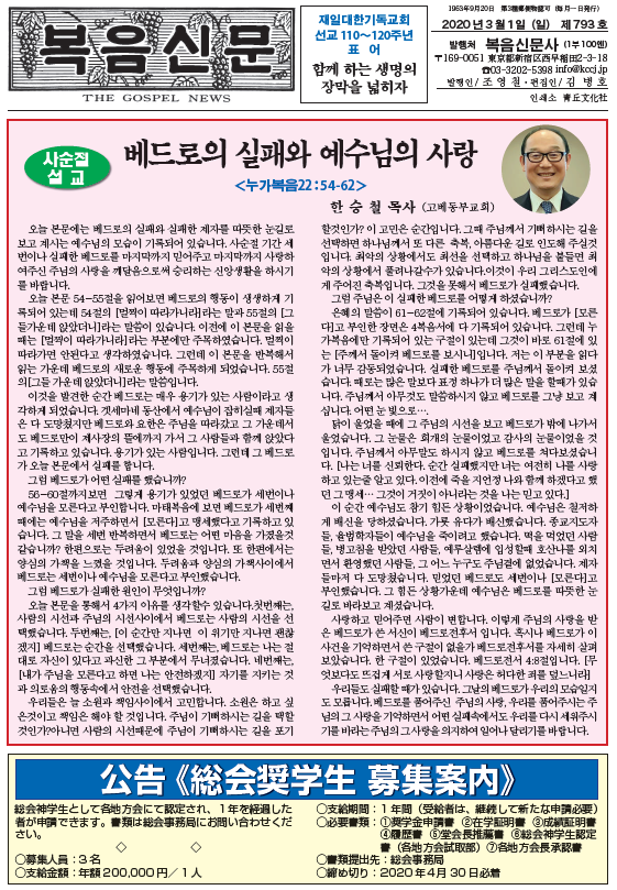제793호 복음신문 2020년 03월호 입니다. 하기의 첨부파일을 클릭하시기 바랍니다.