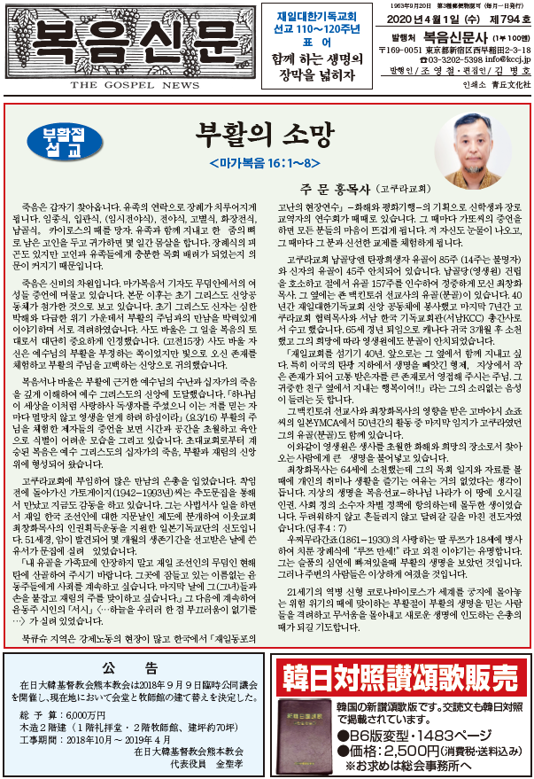 제794호 복음신문 2020년 04월호 입니다. 하기의 첨부파일을 클릭하시기 바랍니다.