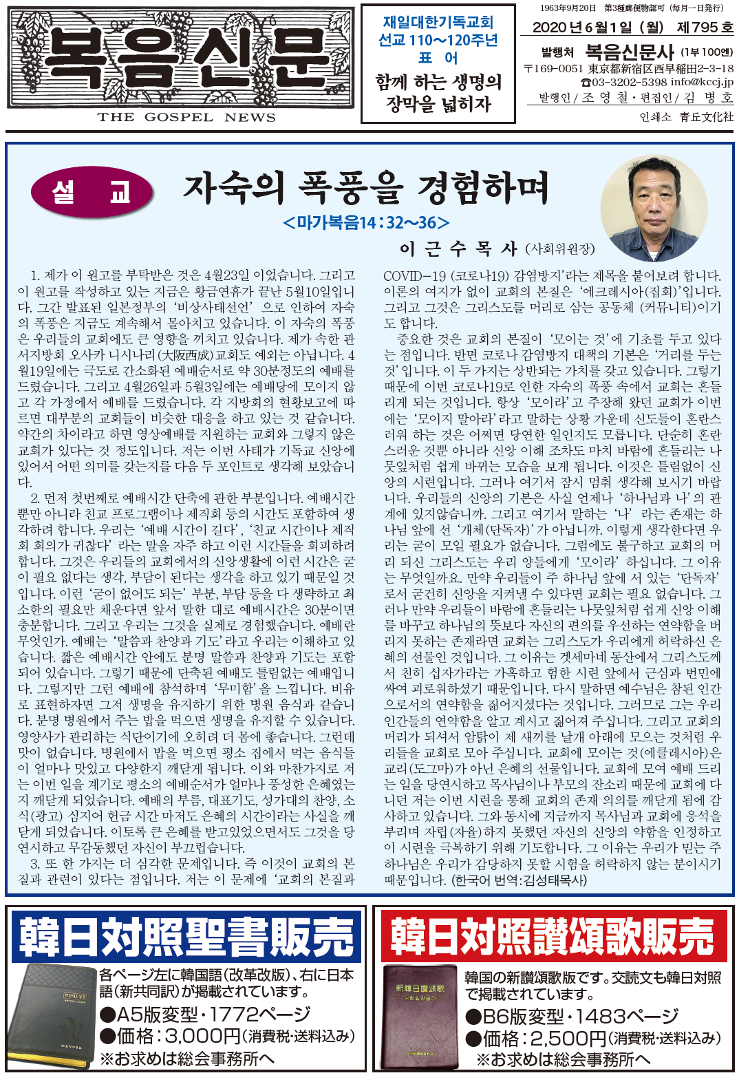 제795호 복음신문 2020년 06월호 입니다. 하기의 첨부파일을 클릭하시기 바랍니다.