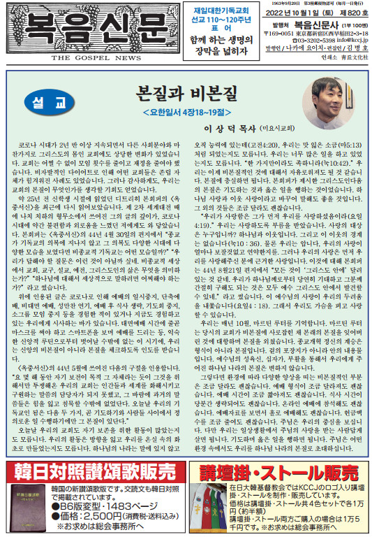 제820호 복음신문 2022년 10월호 입니다. 하기의 첨부파일을 클릭하시기 바랍니다.