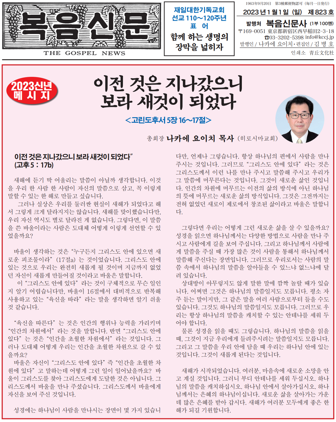 제823호 복음신문 2023년 01월호 입니다. 하기의 첨부파일을 클릭하시기 바랍니다.