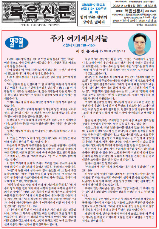 제822호 복음신문 2022년 12월호 입니다. 하기의 첨부파일을 클릭하시기 바랍니다.