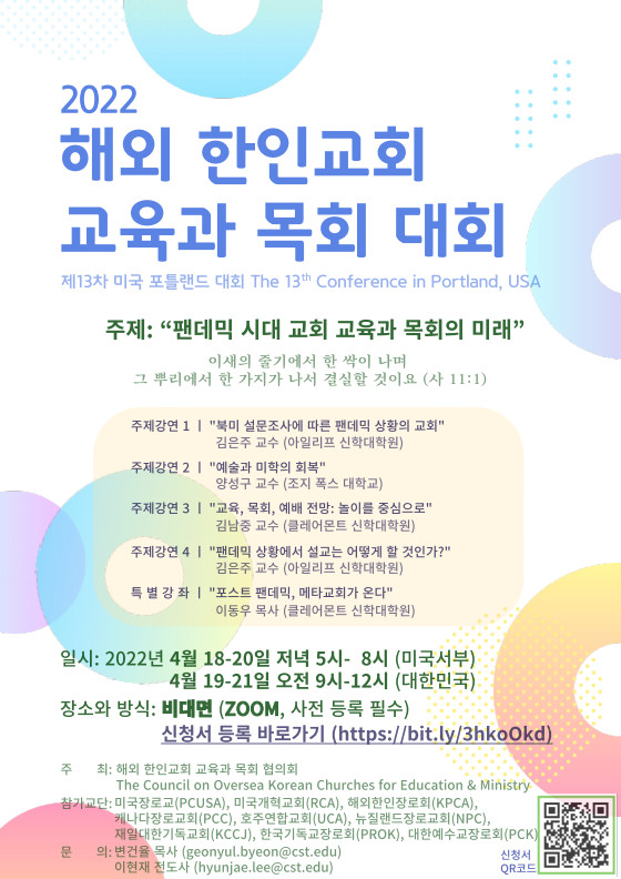 제 23 회 성경 세미나 개최 알림 (리모트) “주의 말씀은 내 발에 등이요 내 길에 빛이니이다.” 시편 119:105 "성경 세미나"는 남성 목사가 많은 교회 정세 가운데 성경을 여성의 입장에서 읽어보고, 이 곳, 이 때에 하나님께서 어떻게 우리 ...(22-01-28)
