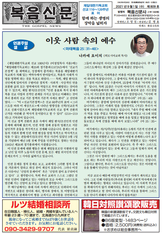 제810호 복음신문 2021년 10월호 입니다. 하기의 첨부파일을 클릭하시기 바랍니다.