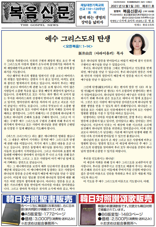 제811호 복음신문 2021년 12월호 입니다. 하기의 첨부파일을 클릭하시기 바랍니다.
