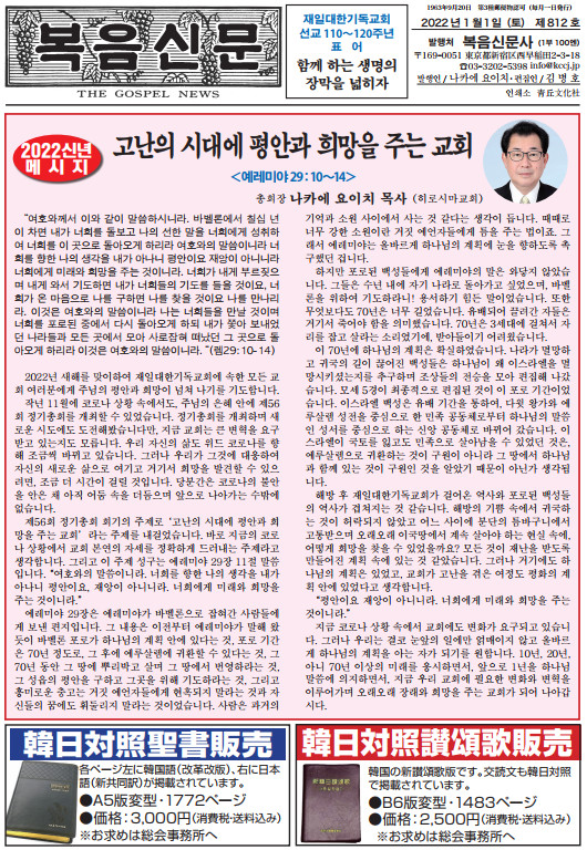 제812호 복음신문 2022년 01월호 입니다. 하기의 첨부파일을 클릭하시기 바랍니다.