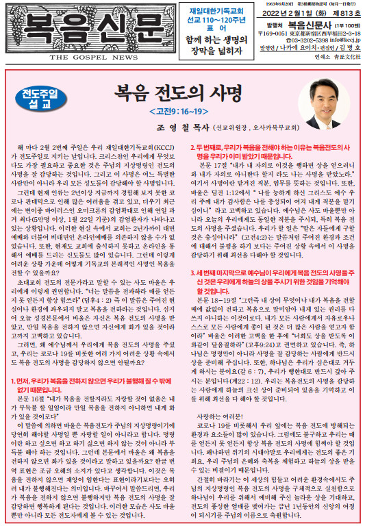제813호 복음신문 2022년 02월호 입니다. 하기의 첨부파일을 클릭하시기 바랍니다.