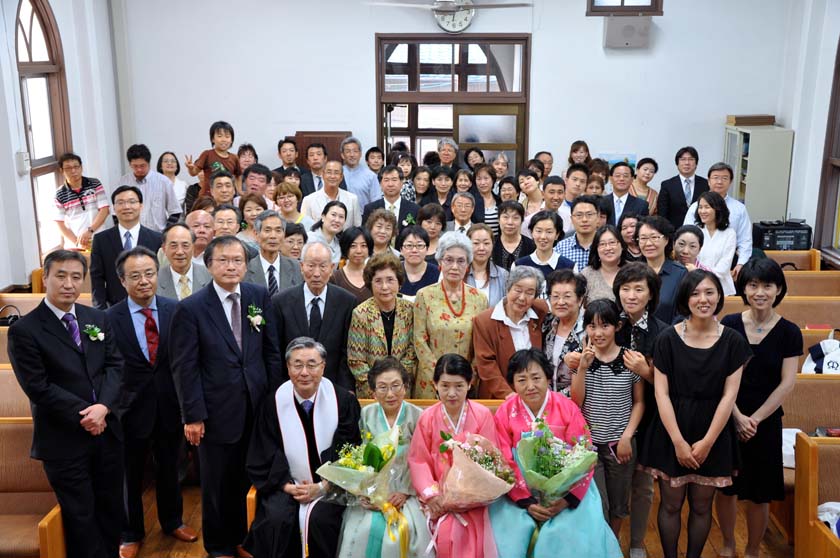 2013年5月19日(主日)午後4時から京都教会において、裵良一長老の将立式、趙和子勧士の就任式及び高博長老、金絹江勧士、金信惠執事の名誉推戴式が執り行われた。