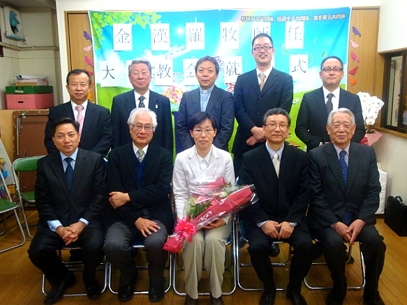 その後、趙永哲牧師(関西地方会会長)の司式のもと、書記の朴栄子牧師からの紹介後、誓約が交わされた。その後、勧勉を金鐘賢牧師...(13-02-12)