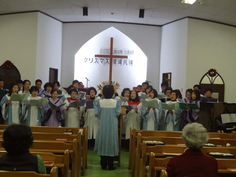12月9日アドベント第2主日、山口・九州・沖縄県の10教会と1開拓伝道集会の内8教会の100余名が集い、連合クリスマス音楽礼拝(教会女性連合会・青年会主催)が開催された。時折粉雪が舞い寒風吹きすさぶ中、在日の歴史が刻まれた下関教会にて久しぶりに、また初めて会う主にある兄弟姉妹がクリスマスの喜びを分かち合った。李好子教育部長(小倉)...(12-12-12)