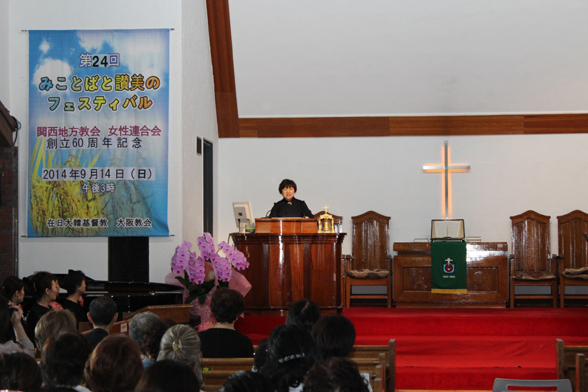 9月14日(主日)、関西地方会女性連合会の創立60周年記念として、第24回「みことばと讃美のフェスティバル」が、12教会の女性会会員156 名を含め269名が参加して、大阪教会で開催された。礼拝堂には溢れるほどに集まった信徒たちが心を一つにして恵みを受けた。