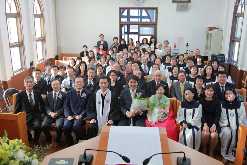 牧師委任式は中部地方会長代行勧潤日牧師の司式で始まり、誓約と宣布が出された。鄭守煥牧師(豊橋教会)と全柄玉牧師(名古屋南教会)が勧勉を、杉本和道牧師(日本基督教団各務原教会)と多田愰牧師(日本キリスト教会岐阜教会)が祝辞をした。