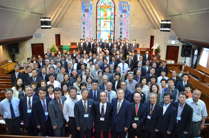 在日大韓基督教会第52回定期総会が、去る10月14日(月)から16日(水)まで名古屋教会で「聖霊によって証しする教会」(ローマ9:1)の主題で開催された。午前11時からの開会礼拝は、長老副総会長林英宰長老の司会で、総会長金武士牧師が「天と地の神の種」(エズラ5:6〜17)と題して説教し、趙重來副総会長の司式で聖餐式を執り行った。