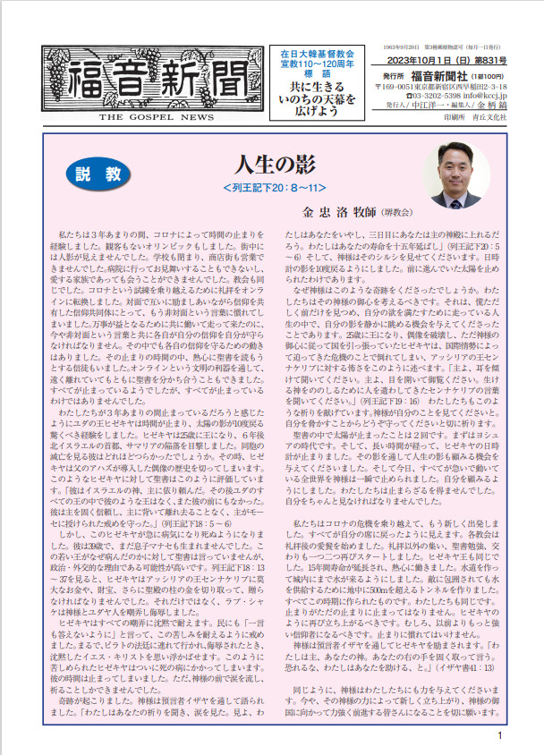 第831号 福音新聞 2023年10月号です。下記の添付ファイルをクリックしてください。