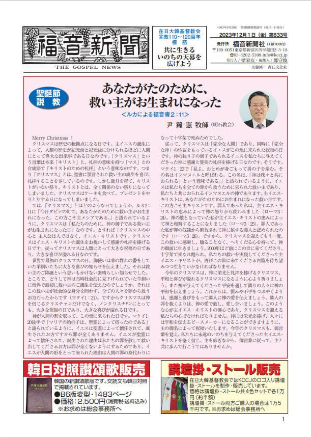 第833号 福音新聞 2023年12月号です。下記の添付ファイルをクリックしてください。