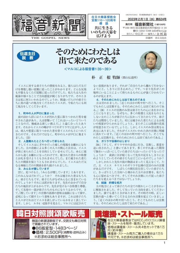 第824号 福音新聞 2023年02月号です。下記の添付ファイルをクリックしてください。
