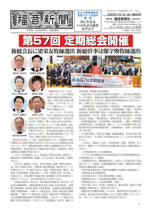 第832号 福音新聞 2023年11月号です。下記の添付ファイルをクリックしてください。