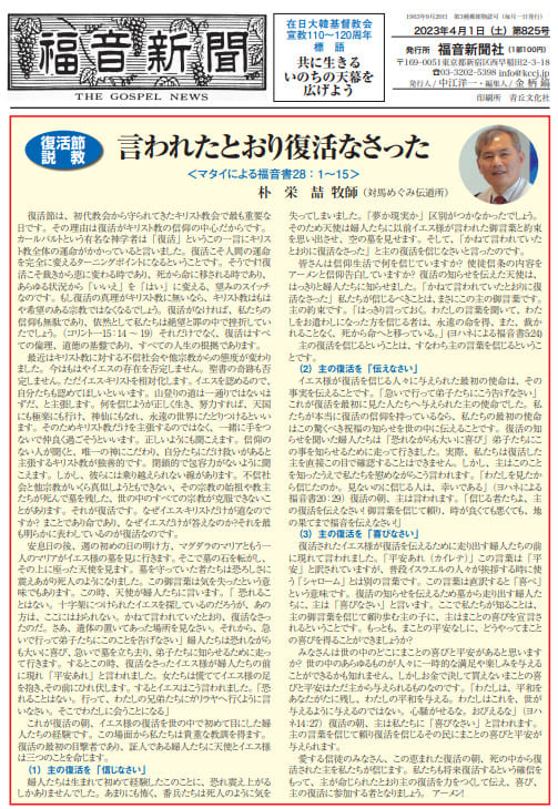 第825号 福音新聞 2023年04月号です。下記の添付ファイルをクリックしてください。