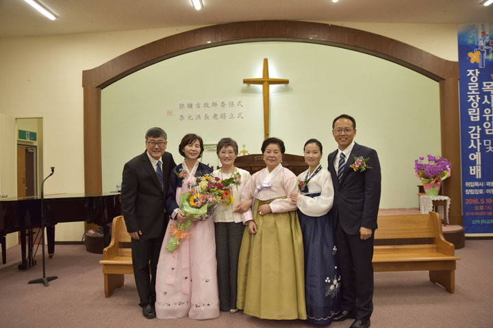 2016年5月19日(木)沖縄教会においては、郭鏞吉牧師に委任式と李元洪長老将立式が行なわれた。