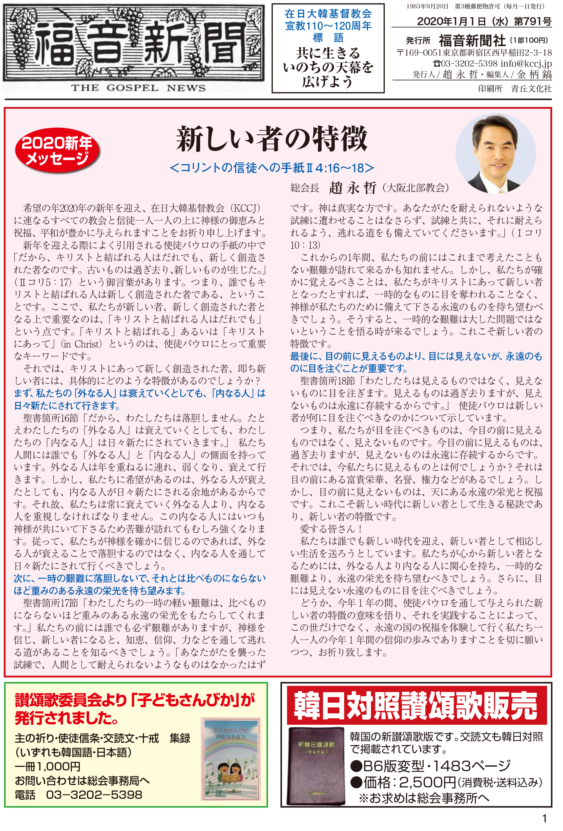 第791号 福音新聞 2020年01月号です。下記の添付ファイルをクリックしてください。