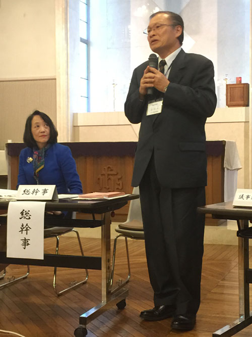小橋孝一議長の開会礼拝説教の後、議事進行に入り、各報告と決算、役員選手と総幹事選任が承認された。本総会では、金性済牧師(前在日大韓基督教会総会長)が総幹事として選ばれ、金迅野牧師(横須賀教会)が前期に引き続き、書記に選ばれた。