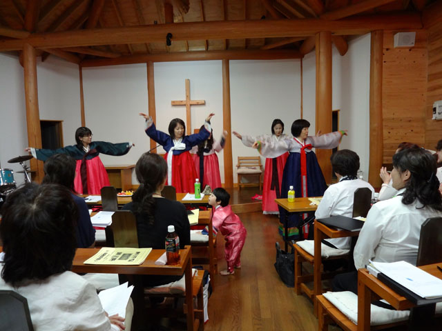 夕刻、山形県天童市の山形ウリ教会(李明信牧師)に到着。水曜礼拝をともにし、信徒との親睦会をもった。今回の参加者の中には、西部地方会の「シオン合唱団」11名がいる。被災地で讃美をしたいという祈りが実現、ツアー中に4回の奉仕ができた。